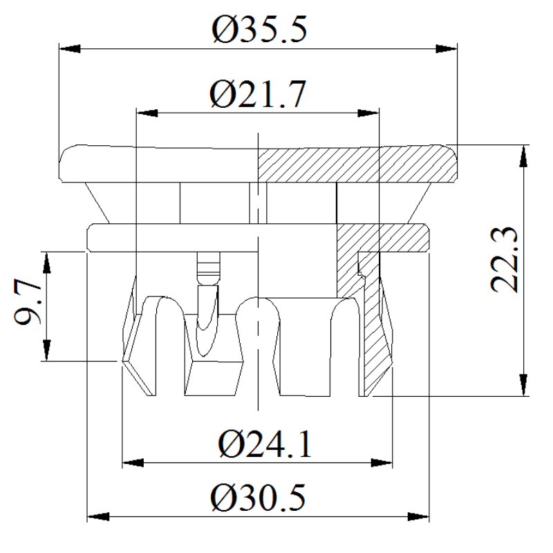 产品名称: 24mm凹形塑料盆溢流盖