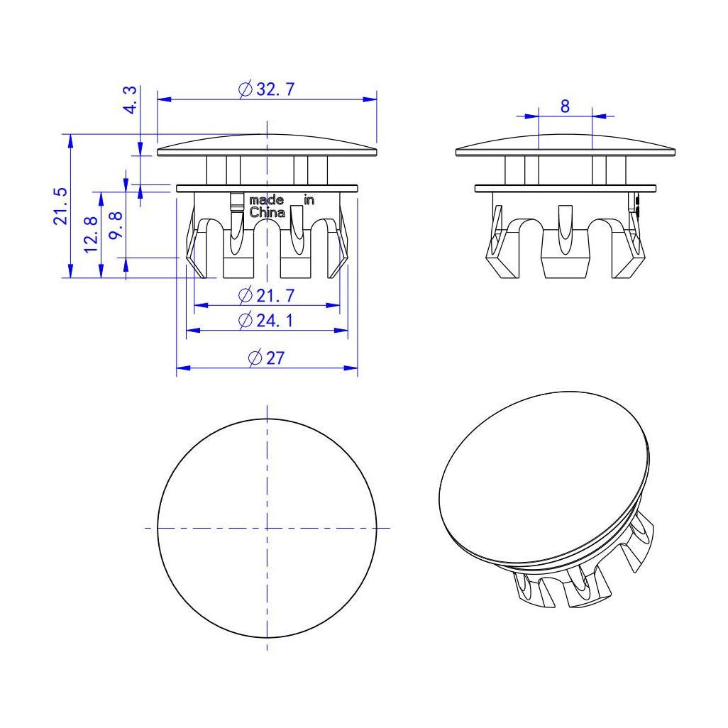 这款溢流环采用实心黄铜制成,经久耐用,耐腐蚀。它采用双面结构,表面凸起,外观时尚。它适用于直径在 23 毫米至 25 毫米之间的面盆孔,安装简便,兼容性广泛。