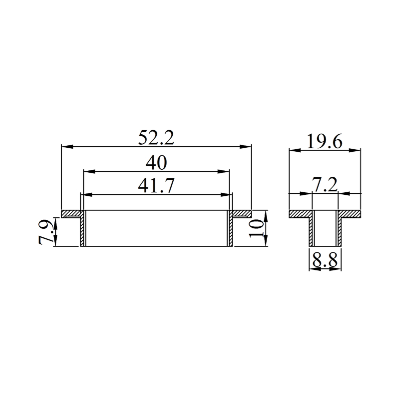 这款溢水盖适用于长 42 毫米、宽 9 毫米的矩形水槽溢水孔。